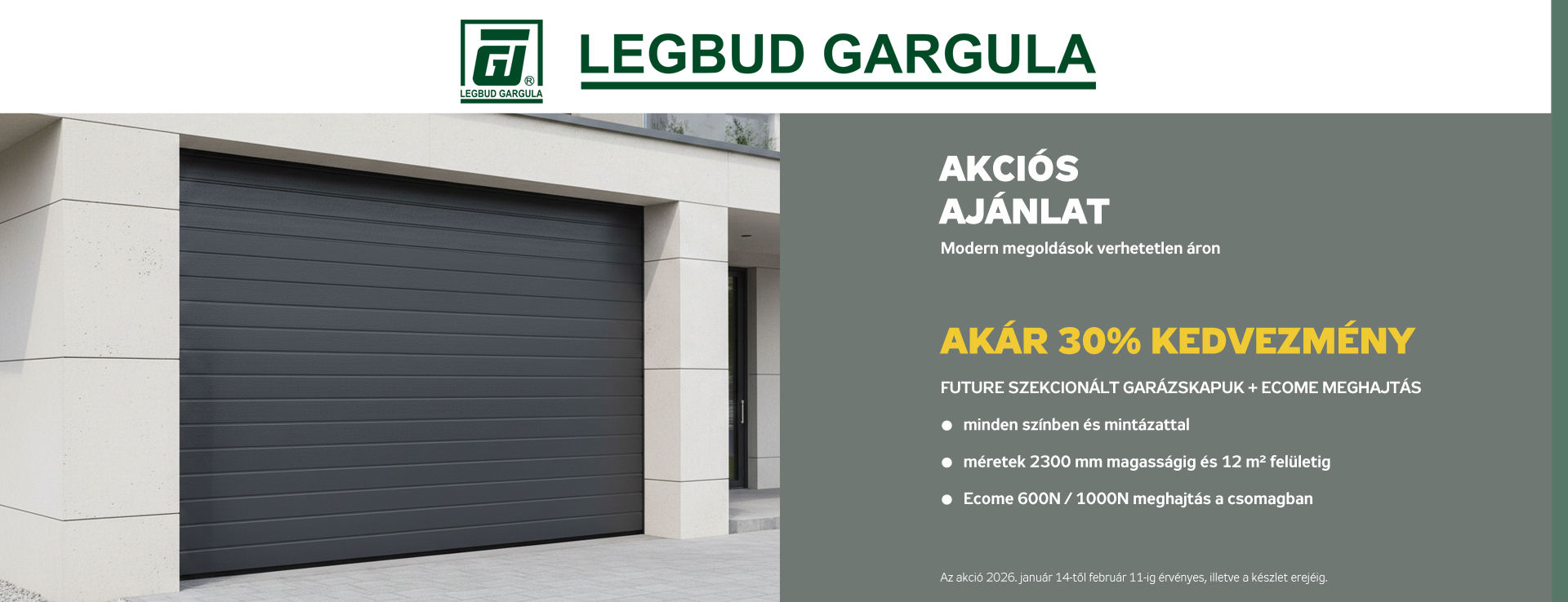 Örömmel tájékoztatjuk, hogy elérhetővé tettük online áruházunkat, ahol a LEGBUD GARGULA termékei közvetlenül megvásárolhatók. Kínálatunkban billenő és szekcionált garázskapuk szerepelnek házhozszállítással, valamint pótalkatrészek és kapualkatrészek is.