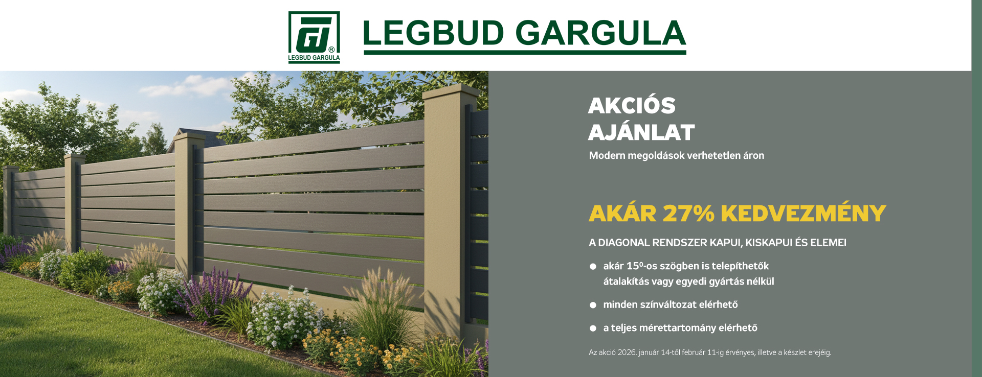 A LEGBUD GARGULA nem csupán kapu- és kerítésgyártó, hanem olyan partner is, akire számíthat ingatlana vagy létesítménye biztonságának megőrzésében. Együttműködés velünk a megbízható kiszolgálás és a bevált megoldások garanciája. Forduljon hozzánk bizalommal – örömmel válaszolunk minden kérdésére és segítünk a megfelelő kapu- és kerítésrendszer kiválasztásában.