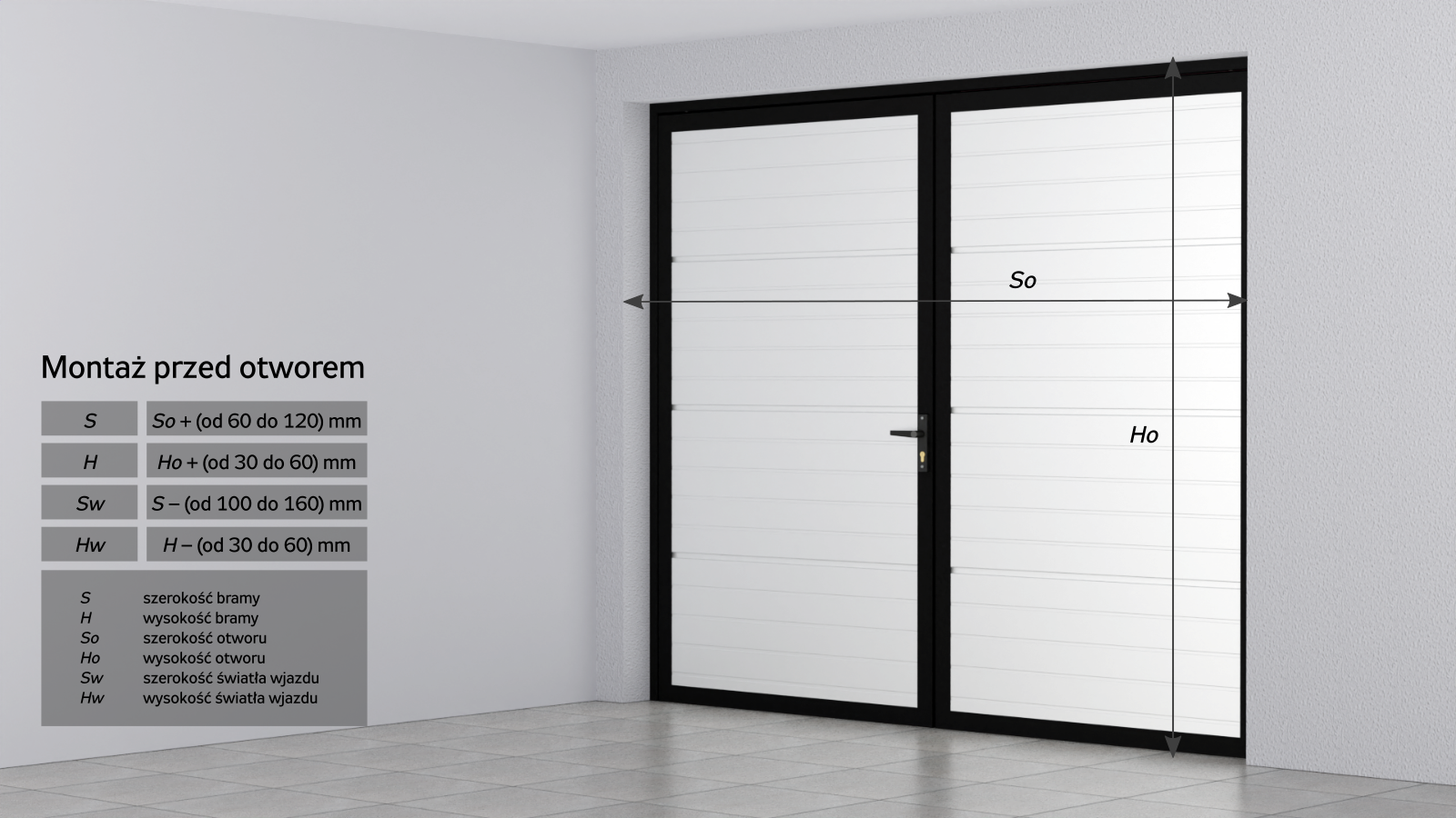 Dopasowanie rozmiaru bramy jest bardzo ważne dla jej funkcjonalności. Nasze bramy aluminiowe są dostępne w różnych wymiarach, co pozwala na ich idealne dopasowanie do wymagań budynku. Brama dwuskrzydłowa może być montowana zarówno w świetle otworu, jak i przed otworem na murze, co daje dużą elastyczność podczas instalacji.