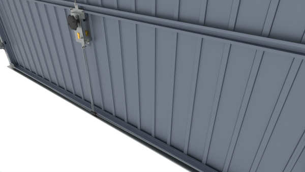 System synchronizacji pracy zatrzasków z napędem. W celu prawidłowego funkcjonowania bramy uchylnej, podnoszonej automatycznie, musi ona być wyposażona w zamek typu TOPLUX oraz mechanizm rozsprzęgania.