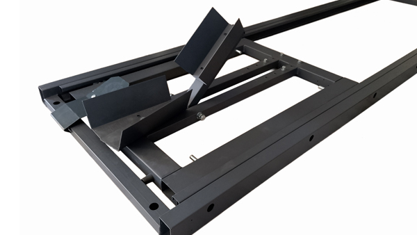 Rampa montowana w podłożu pomagająca wygodnie wjechać motocyklem do wnętrza garażu.